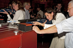 | Leunen? Ik? Kom nou toch! Als de voorzitter van de schietcommissie dit ziet. | Niks sjoemelen. Er wordt op jullie gelet! | Het 'feest' gaat ondertussen 'gewoon' door. |