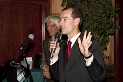 Voor het eerst met de koningin... Willem is net uit Voorhout verhuisd en vraagt nu al de weg naar Sassem??? Beetje vreemd. "Ook namens de koningin een rondje!" Bedankt Willem. Onder: het Koningspaar 2010. |