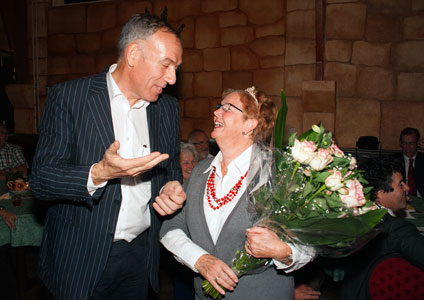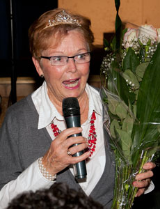 | Nog onbekend met wat haar boven het hoofd hangt. | "Daames, met dubbel a, ik heb genoten en ik heb de gordijnen zien wapperen." | De eerste felicitatie. |