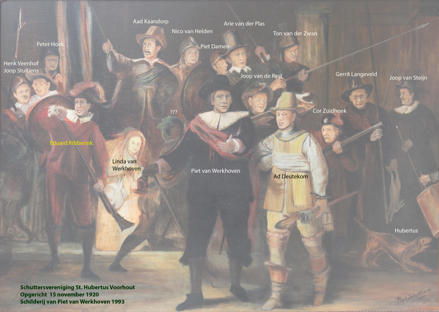 Nachtwacht van Schuttersvereniging St. Hubertus. Schilderij van Piet van Werkhoven